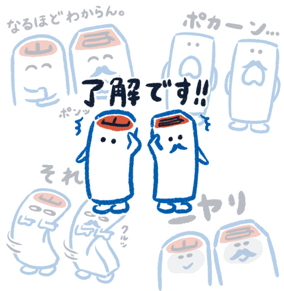 実印の山田くんと角印の石島さんは、電子印鑑GMOサインを世の中のより多くの方々に広めるため、