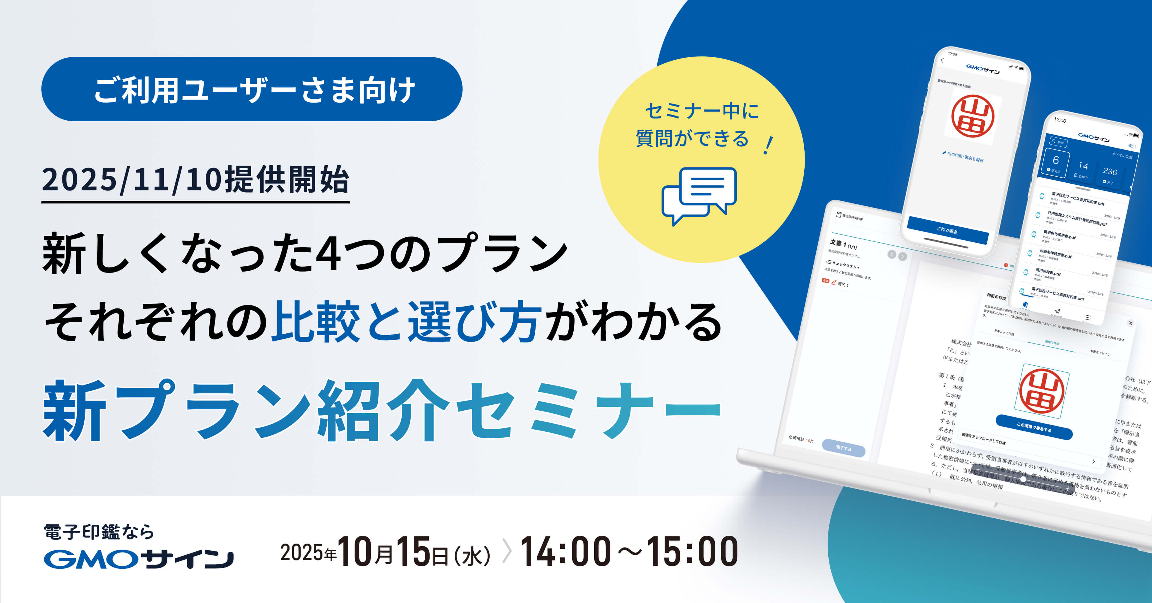 本セミナーは既にご契約いただいているお客さま向けに新しいプランと現在の契約印実印プランとの違い、プランの選び方などをご紹介します。