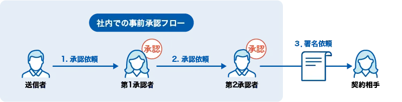 - 文書送信前に、社内の決裁権者や上長への承認作業を必須にすることが可能です