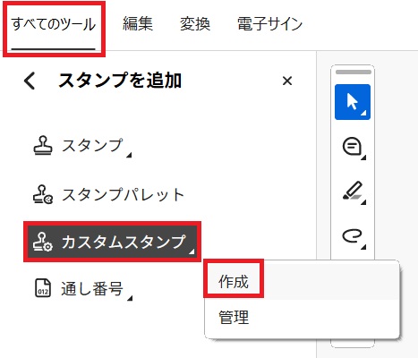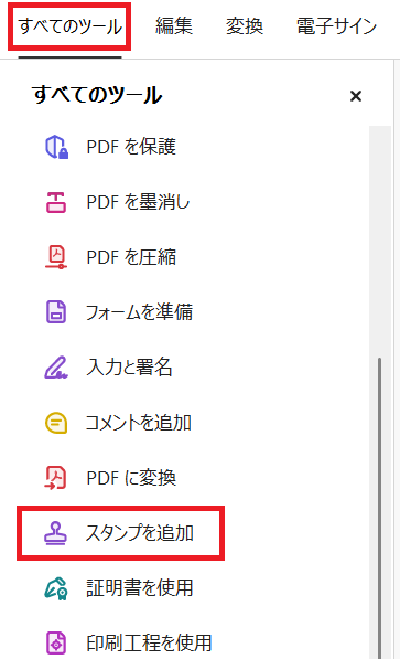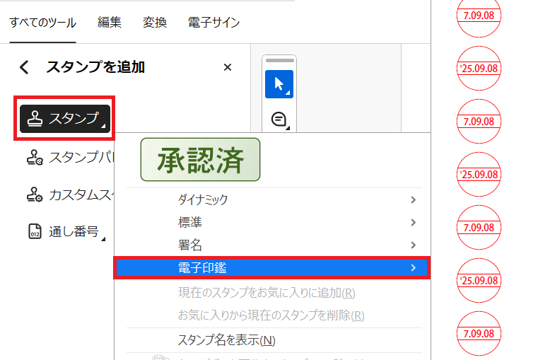 やり取りの多いPDF書類に対して印影を挿入する場合は、Adobe Acrobat Readerを使うのがおすすめです。スタンプ登録をしておけば、次回以降もワンクリックで押印できるようになります。