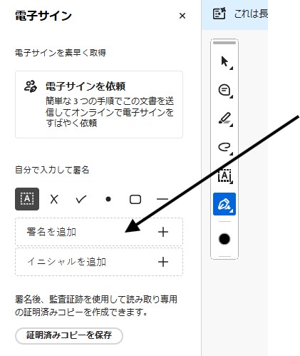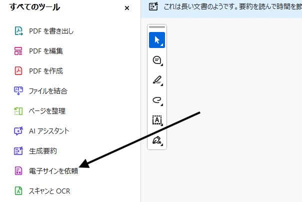 右側の「ツール」から「電子サインを依頼」を選びます。