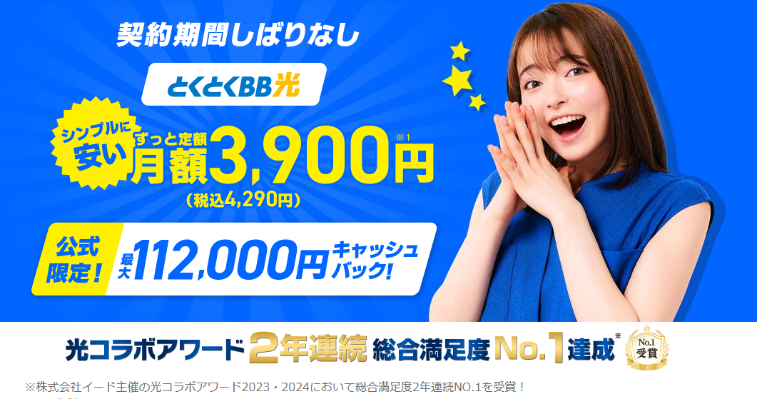 はじめての光回線は、お手軽に試せるGMOとくとくBBをご検討ください!
