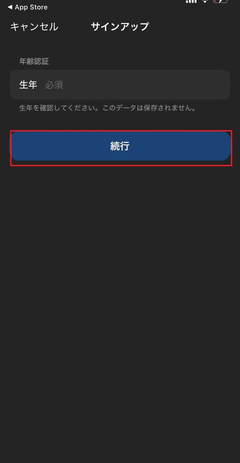 生年月日を入力し、「確認」をタップします。16歳以上が対象です。