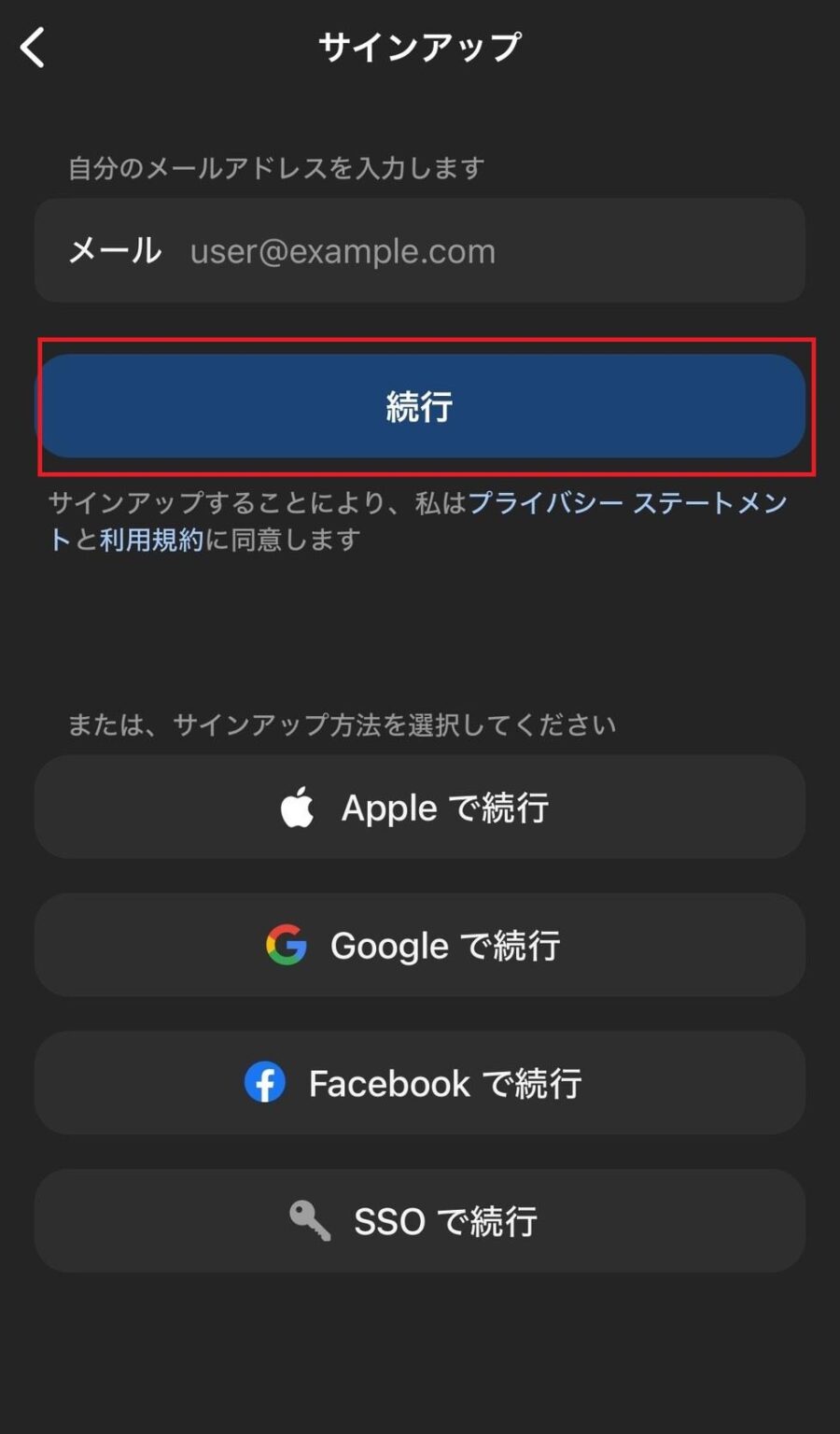 メールアドレスを入力し、「サインアップ」をクリックします。