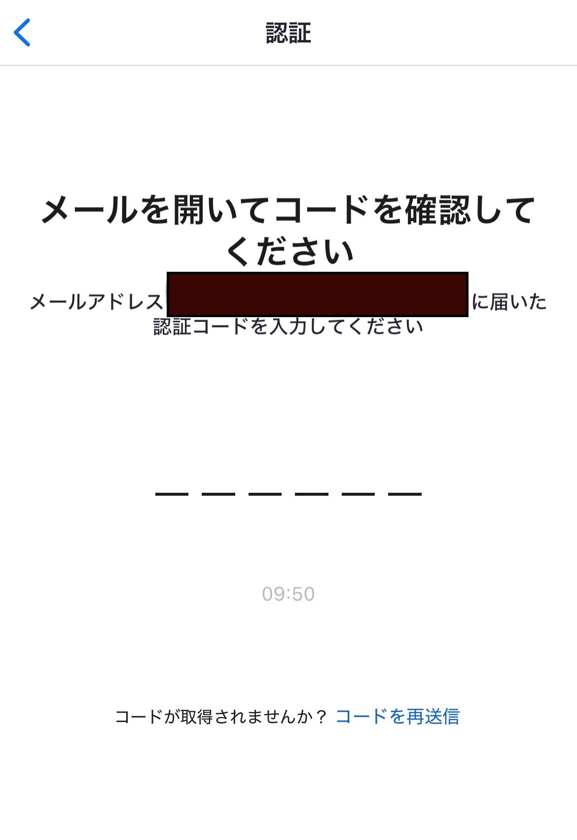 登録したメールアドレスに届いた6桁の認証コードを入力し、「認証」をタップします。
