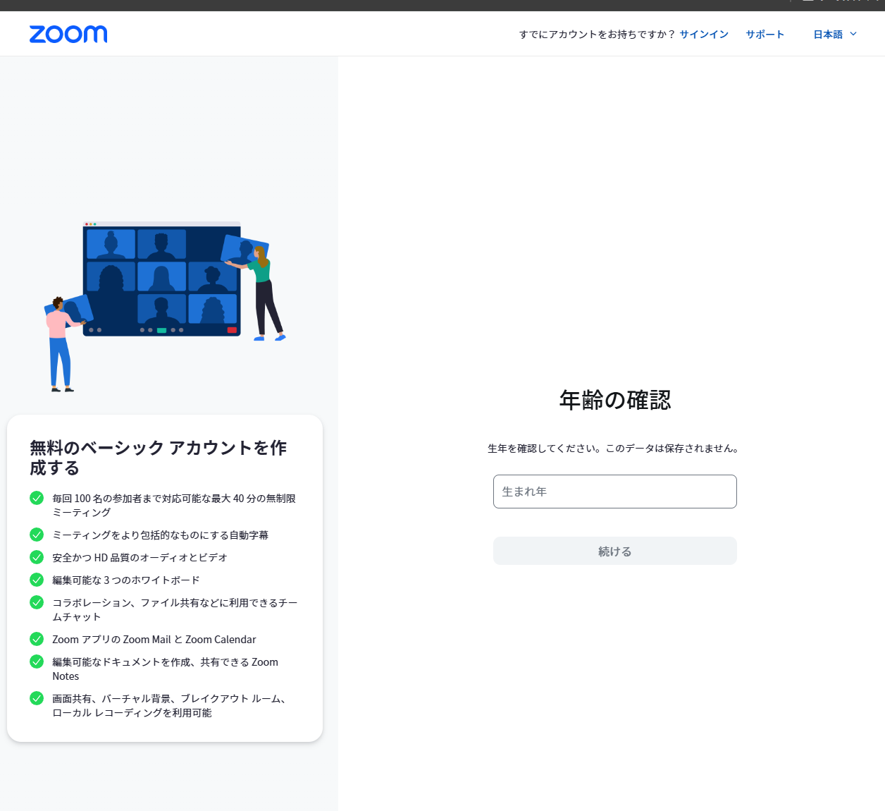 パソコンでZoomのアカウントを作成する手順は以下のとおりです。