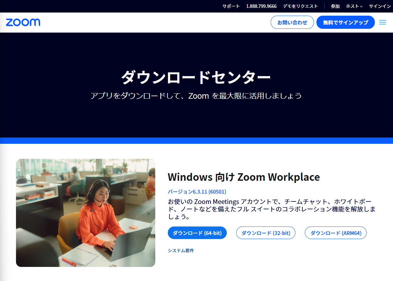 パソコンの場合は、Zoom公式サイトのダウンロードセンターから、お使いのOS(Windows、Macなど)に対応したアプリをダウンロードしましょう。
