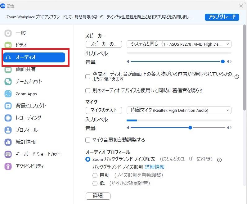 会議前にマイクとスピーカーが正しく設定されているか確認しましょう。以下の手順で行います。